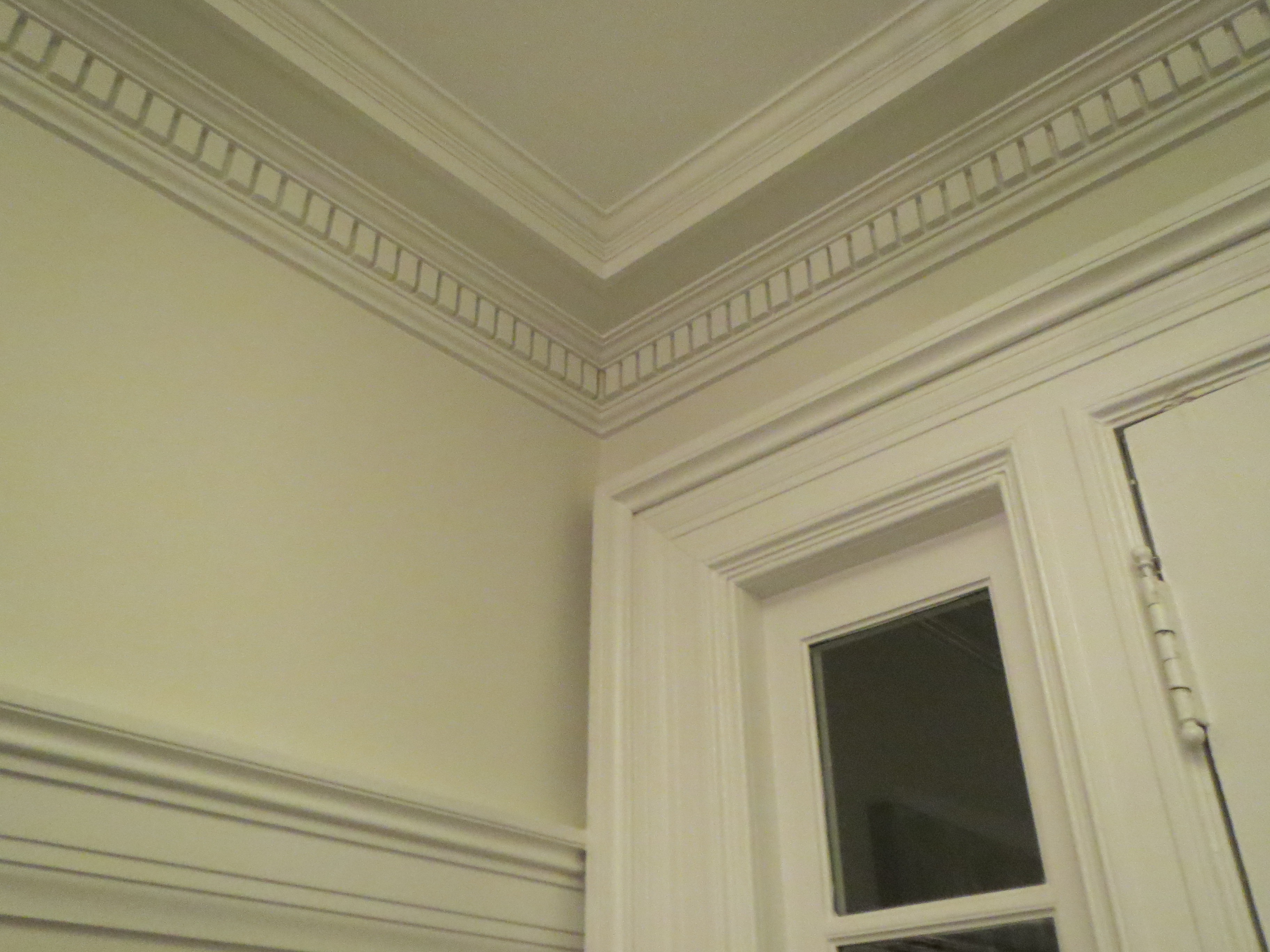 The ceilings and molding in the house are also beautiful and remain largely untouched since the house was built. The crown molding in the first floor is made of either wood or plaster (?), and is original to the house.