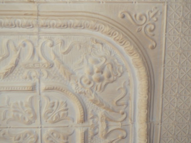 The ceiling in the pool room is copper, but has been painted over so many times, that the detail is difficult to make out. I am thinking of stripping the paint off, but I’m sure there are several layers and the project may take days. I looked up the procedure on how to remove paint from copper ceiling tiles, and it looks complicated and involved. Not to mention I’m 5’3″ and will have to be on a ladder the whole time. Its on my list, though…