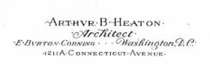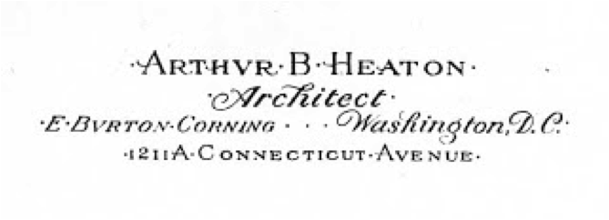 Heaton, a prolific architect and designer with over 1,000 commissions during his career, worked in the DC metropolitan area between 1897 and 1947. His designs include commercial and apartment buildings, private homes, and theaters. Heaton was supervising architect for the Washington Cathedral for between 1908 and 1928, and the Associate Architect for the plan of the George Washington Campus in the 1920s.