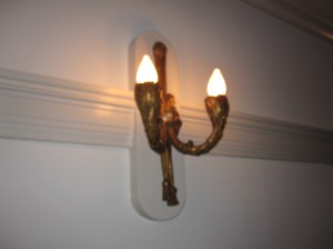 There are wall sconces throughout the house, in generally good condition.