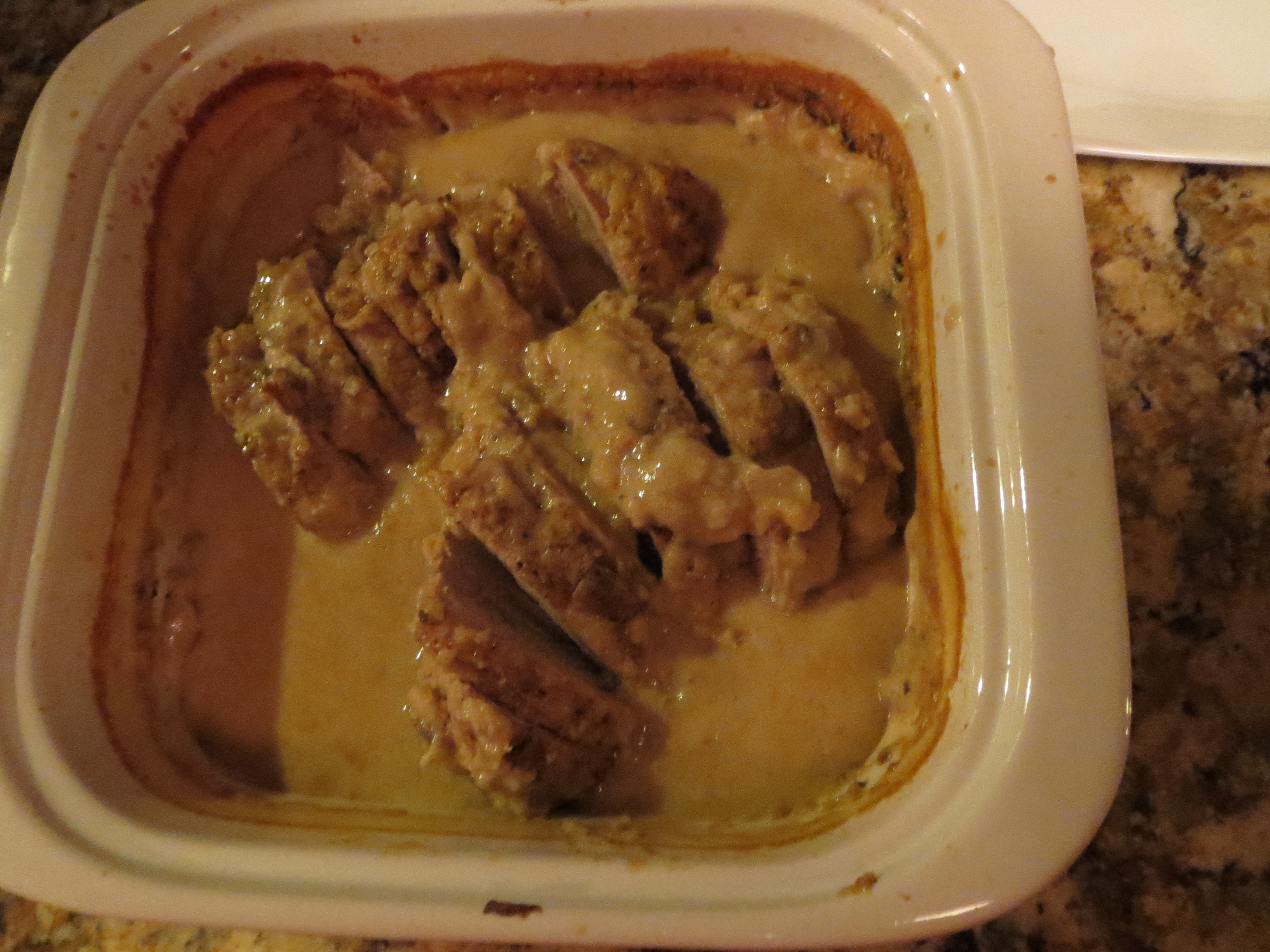- Place tenderloin in an oven dish and pour soup mixture on top