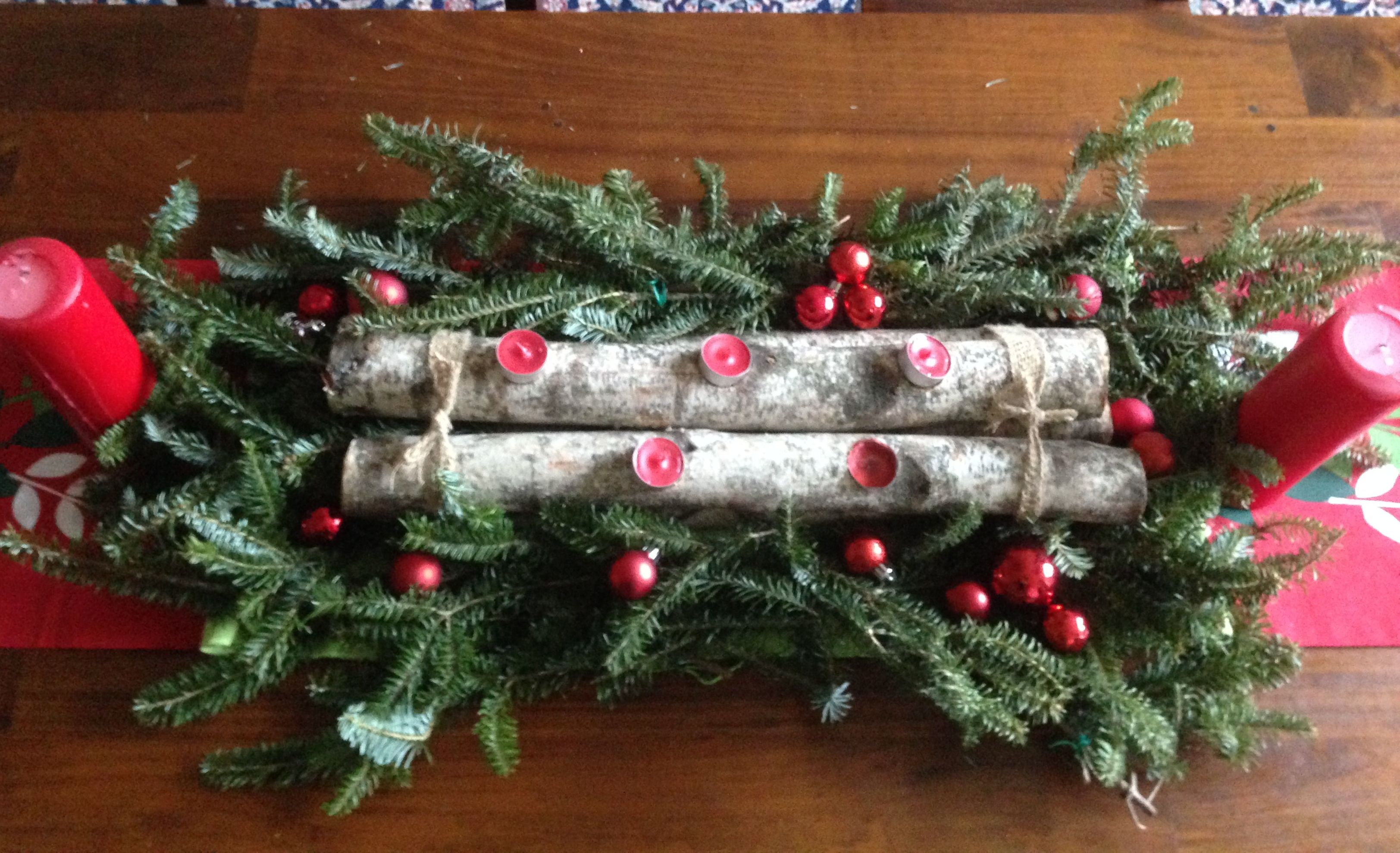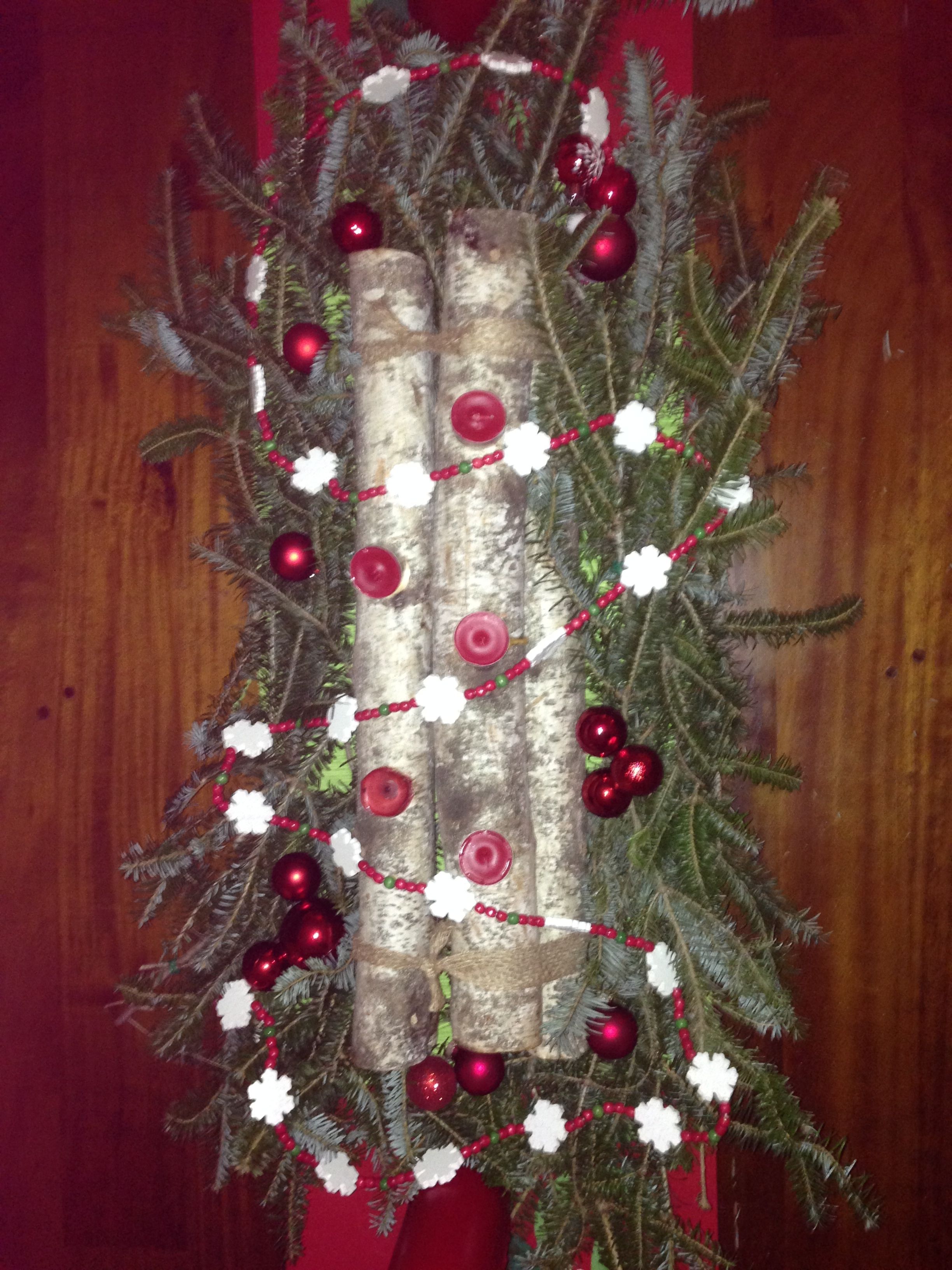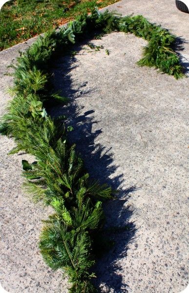 I had my husband cut the holes for the tea lights and followed the instructions to build two pine garlands with floral wire.
