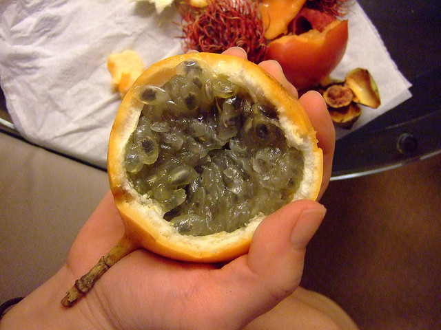 2. Granadilla is native to the Andes Mountains of Colombia, Venezuela and Bolivia, but is now grown from Argentina to Mexico, and in Australia and Africa (where is it known as ‘passion fruit’), and Papua New Guinea (where is known as ‘sugar fruit’).